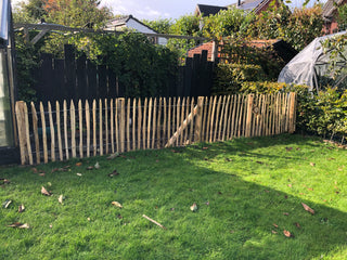 For installing the fence, we recommend our chestnut posts with a diameter of 8 to 10 cm. Each post should be spaced 200 cm apart. The length of the posts should be approximately 1.5 times the height of the fence.