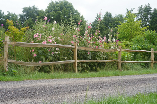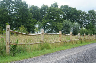The use of split chestnut wood gives this fence a robust character. Thanks to its warm color and natural shape, the fence blends in beautifully with the rural surroundings.