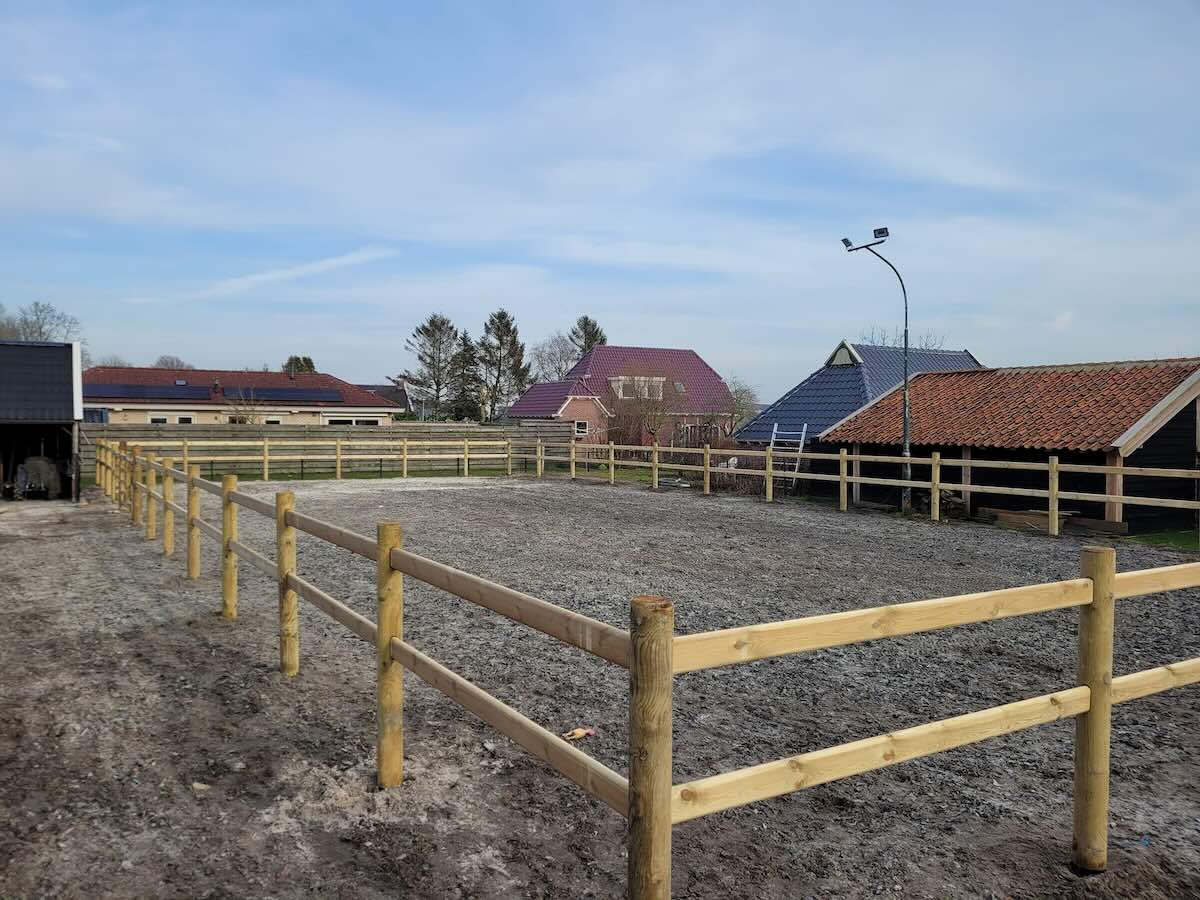 Plaatst u de bovenste ligger van de omheining op 1.20m, 1.30m of 1.40m dan staat de paal respektievelijk 90cm, 80cm of 70cm in de grond.